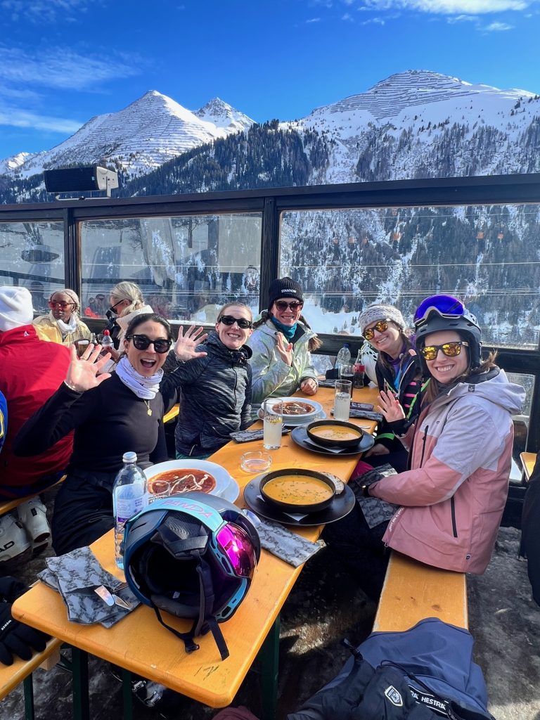 Mornings began with a delightful breakfast of fresh fruits, traditional English and continental favourites, and plenty of coffee and juices. The ladies, full of enthusiasm, were dressed and ready to go by 8:30am to meet our fantastic ski instructors and guides from Ski School Arlberg. Milly, Christian, Michaela, and Klemens were simply amazing—patient, fun, and dedicated to ensuring everyone had a safe and enjoyable experience on the slopes. Together with Zoe, Lucy, and Andy from Kaluma Ski, we made sure our ladies maximized their time on the mountain and enjoyed some après-ski fun too!